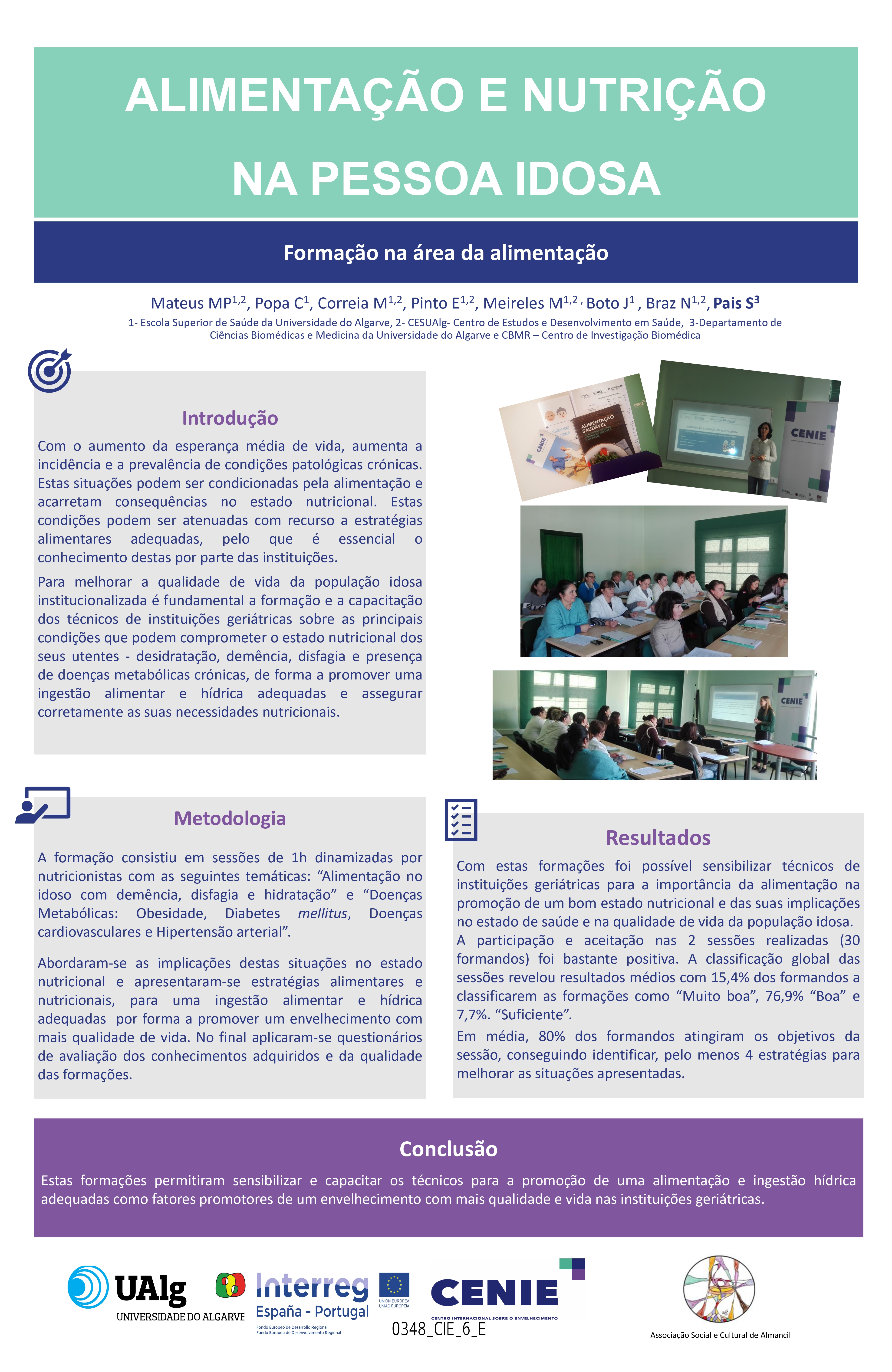 Con el aumento de la esperanza media de vida, aumenta la incidencia y prevalencia de las enfermedades patológicas crónicas. Estas situaciones pueden estar condicionadas por la dieta y tener consecuencias en el estado nutricional. Estas condiciones pueden aliviarse utilizando estrategias de alimentación apropiadas. Para mejorar la calidad de vida de la población mayor institucionalizada, es fundamental formar y capacitar a los técnicos de las instituciones geriátricas en las principales condiciones que pueden comprometer el estado nutricional de sus usuarios - deshidratación, demencia, disfagia y presencia de enfermedades metabólicas crónicas - con el fin de asegurar correctamente sus necesidades nutricionales.