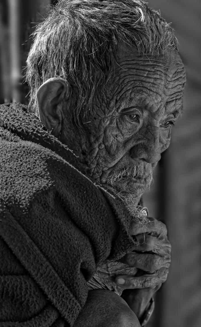 In India near about 100 yrs. old age person looking like small kid in portrait and his eyes shine like young person...